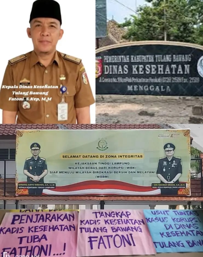 Buktiinveatigasi.com (Tulang Bawang Lampung) – Beragam persoalan indikasi perbuatan melawan hukum dalam pengelolaan anggaran di Dinas Kesehatan (Dinkes) Tulang Bawang, akan dibawa ke Kejaksaan Tinggi (Kejati) Lampung pekan depan. Laporan tersebut, rencananya bakal diberikan DPP LSM Forum Rakyat Tulang Bawang (Fortuba), pada Korps Adhyaksa Lampung kamis mendatang. Sabtu (12/07/2025)