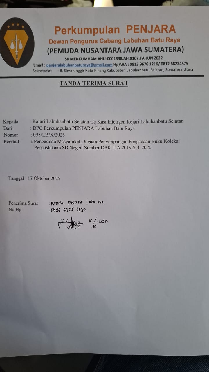 Aroma penyimpangan tercium setelah Perkumpulan Pemantau Kinerja Aparatur Negara (PENJARA) melayangkan Pengaduan Masyarakat (DUMAS) ke Kejaksaan Negeri Labusel, Jumat (17/10/2025), dengan nomor surat 095/LB/X/2025.