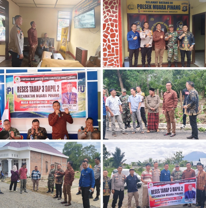 Buktiinvestigasi.com (Empat Lawang Sumsel) – Ketua DPRD Empat Lawang, Darli SH, MH, menggelar reses tahap 3 untuk Dapil 2 Kecamatan Muara Pinang Masa Jabatan 2024-2025. Dalam acara tersebut, Darli turun langsung ke lapangan untuk meninjau infrastruktur yang telah dibangun dan mendengarkan berbagai aspirasi masyarakat. 13/12/24