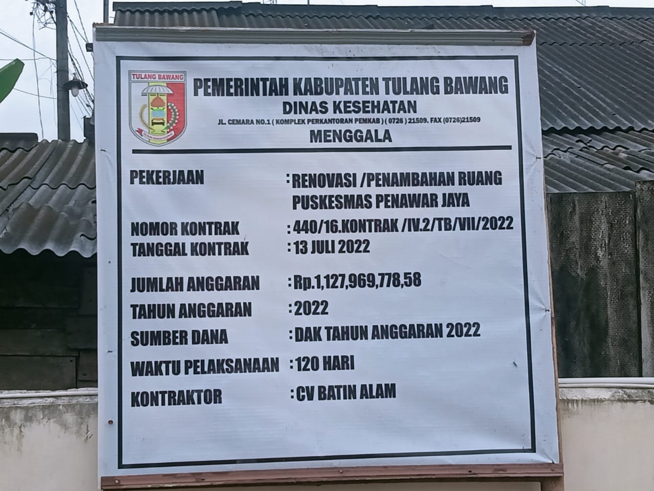 Buktiinvestigasi.com (Tulang Bawang Lampung) – Pekerjaan Renovasi/ Penambahan Ruang Puskesmas Penawar Jaya oleh CV. Batin Alam di soal warga setempat. Pasalnya, warga menilai proyek ini kurang berkualitas dan menyalahi prosedur semestinya.
