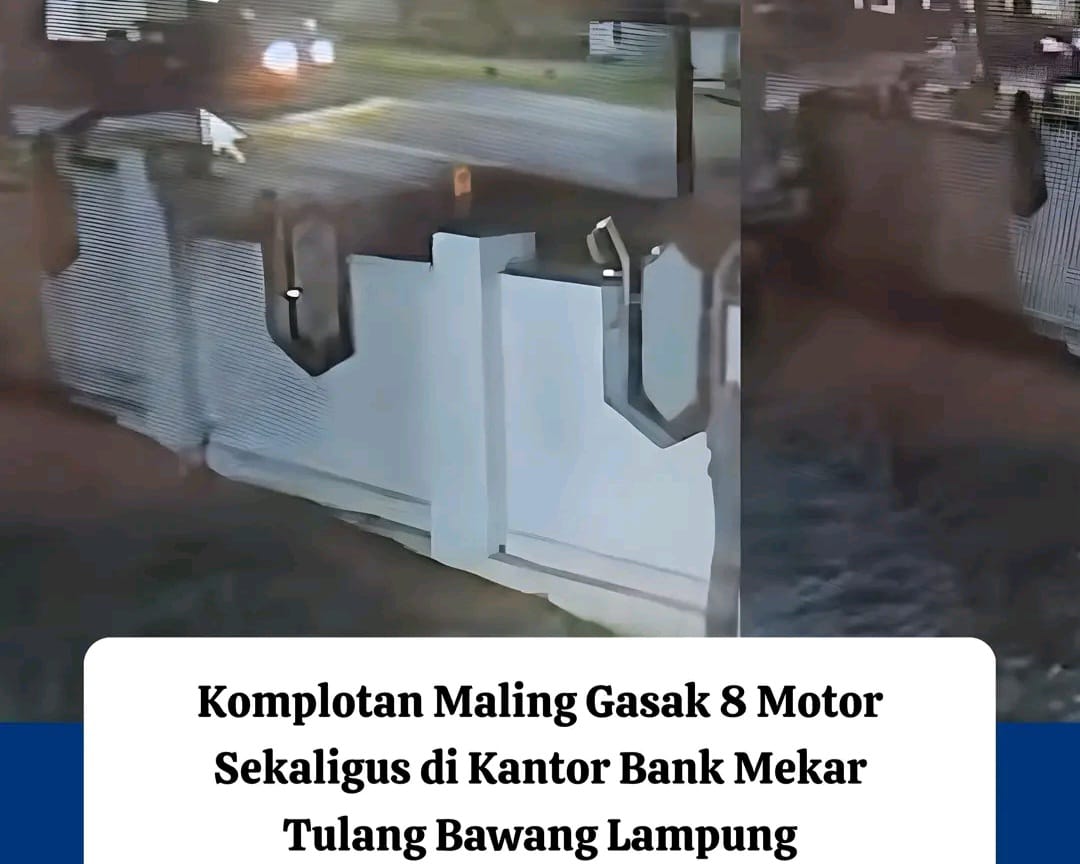 Buktiinvestigasi.com (Tulang Bawang Lampung) – Aksi pencurian sepeda motor di Kabupaten Tulang Bawang, Lampung, memicu keresahan di kalangan masyarakat. Komplotan pencuri nekat menggasak delapan unit motor yang terparkir di kantor Bank Mekar Unit Menggala, Tulang Bawang, Lampung, pada Kamis (27/11/2025).